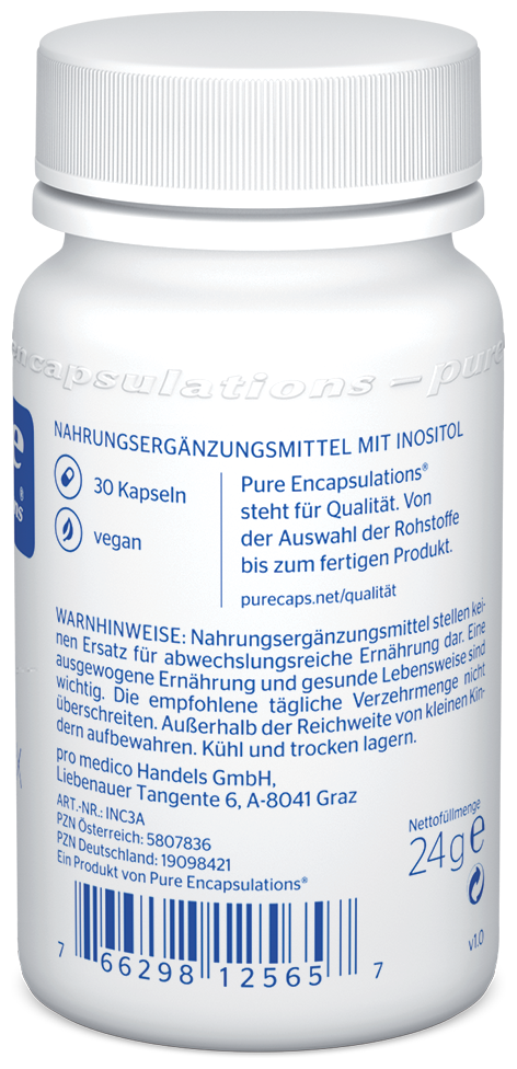Entdecke die Inositol Kapseln von Pure Encapsulations®, dein Schlüssel zu einer ausgewogenen Frauengesundheit. Dieses besondere Produkt vereint Myo-Inositol und D-Chiro-Inositol in nur einer Kapsel täglich. Eine einfache und effektive Möglichkeit, deine tägliche Ernährung zu ergänzen. Mit dem exklusiven Markenrohstoff Caronositol-Fertility®, eine Marke von Biosearch Life, S.A., der Myo-Inositol aus Mais und D-Chiro-Inositol aus den getrockneten Früchten des Johannisbrotbaums gewinnt, bieten wir dir eine hochwertige, pflanzliche und vegane Lösung.