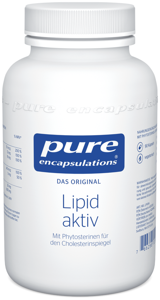 Lipid aktiv ist eine Nährstoff-Formel zur gezielten Unterstützung des Cholesterin- und Fettstoffwechsels. Pflanzliche Phytosterine werden mit Vitaminen, Spurenelementen und Coenzym Q10 kombiniert. Die in Lipid aktiv enthaltenen Phytosterine tragen zur Aufrechterhaltung eines normalen Cholesterinspiegels im Blut bei. Chrom und Zink spielen eine bedeutende Rolle beim Abbau von Fetten und Kohlenhydraten. Zum Schutz der Zellen vor oxidativem Stress ist das fettlösliche Antioxidans Vitamin E enthalten. Das im Energiestoffwechsel so wichtige B-Vitamin Niacin und bioaktives Coenzym Q10 runden den Komplex perfekt ab.