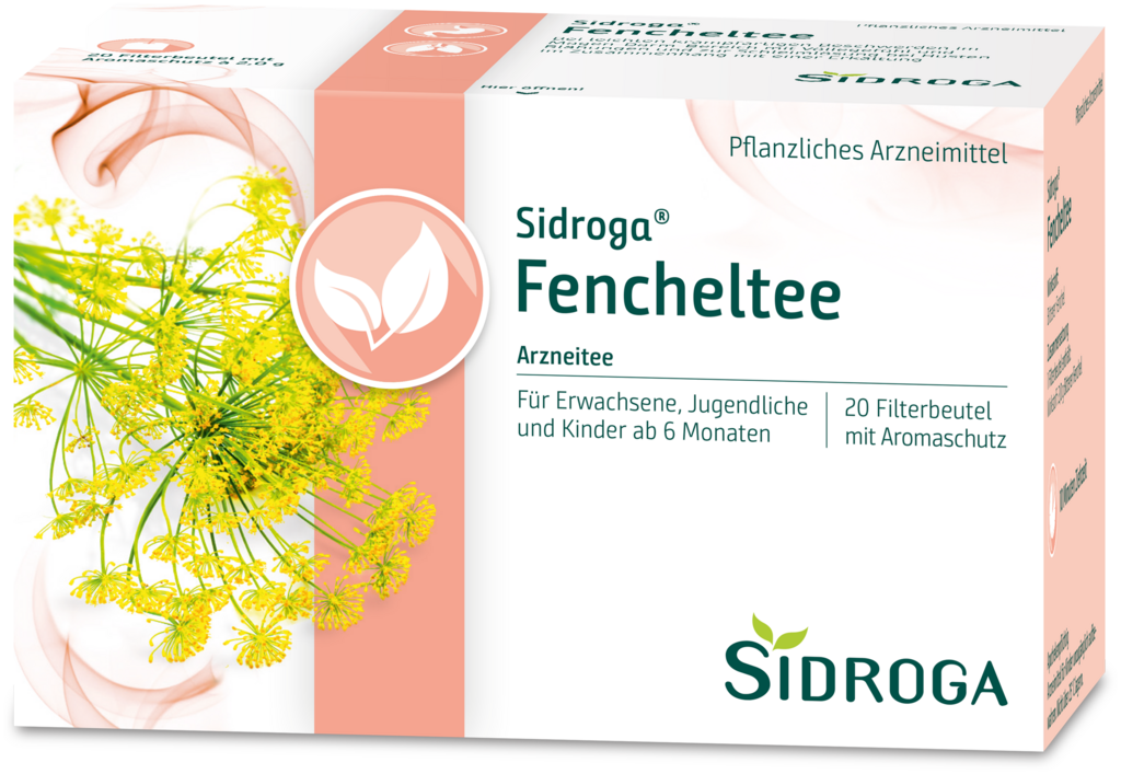 Sidroga Fencheltee ist ein traditionelles pflanzliches Arzneimittel zur Anwendung bei leichten krampfartigen Beschwerden im Magen-Darm-Bereich mit Völlegefühl und Blähungen und zur Schleimlösung bei Husten im Zusammenhang mit einer Erkältung.