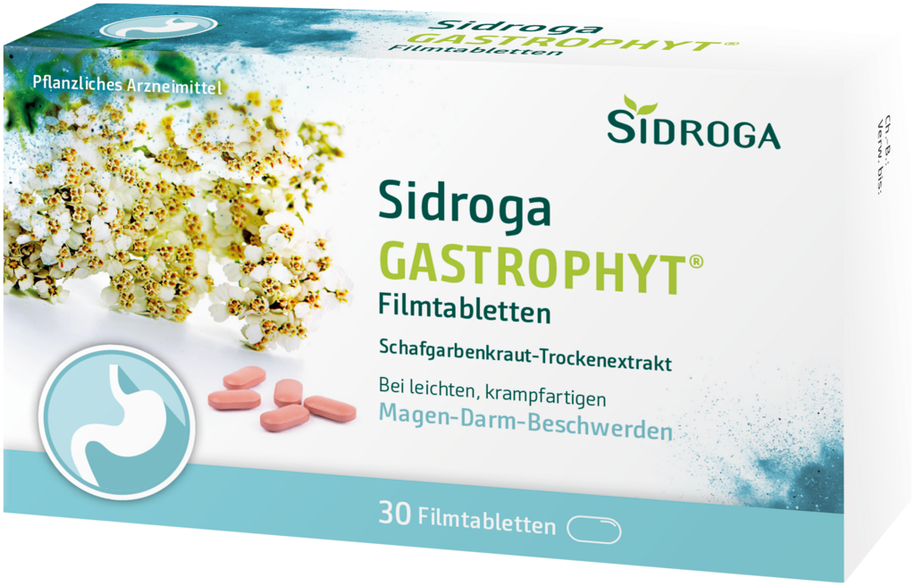 Sidroga GastroPhyt ist ein traditionelles pflanzliches Arzneimittel zur symptomatischen Behandlung von leichten, krampfartigen Magen-Darm-Beschwerden, einschließlich Völlegefühl und Blähungen.