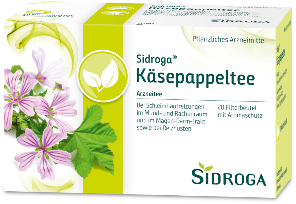 Sidroga Käsepappeltee ist ein traditionelles pflanzliches Arzneimittel zur Anwendung bei Schleimhautreizungen im Mund- und Rachenraum und im Magen-Darm-Trakt sowie bei Reizhusten.