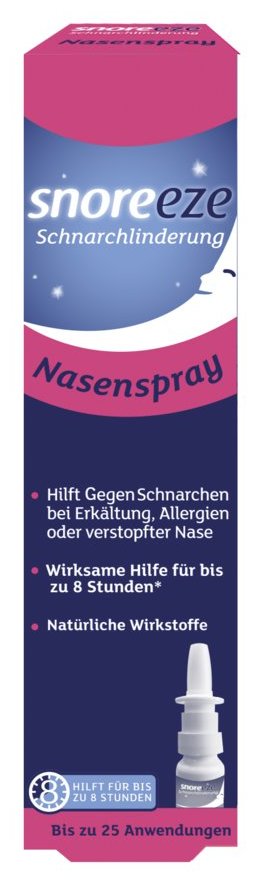Snoreeze Nasenspray hilft gegen Schnarchen bei Erkältung, Allergien oder verstopfte Nase. Seine Mischung auf natürlicher Basis überzieht die Nasengänge mit einem Film, öffnet die Luftwege und schafft somit eine Schnarchlinderung.