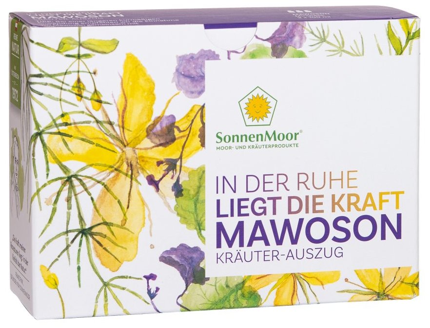 Das SonnenMoor Mawoson ist ein flüssiger Kräuterauszug Magen und Nerven, ein reines Naturprodukt in Arzneibuchqualität, frei von chemischen Konservierungsstoffen. Über einen längeren Zeitraum genossen, wirkt Mawoson beruhigend auf die Nerven und stärkend auf den Magen. Die ausgewählte Kombination kostbarer Kräuter dämpft vorherrschendes Stressgefühl und Burnout-Symptome. Das flüssige Konzentrat wird auch gerne bei Appetitlosigkeit, bei Unwohlsein und kurmäßig angewendet. Das Nahrungsergänzungsmittel auf Kräuterbasis sorgt für optimales Wohlbefinden, trägt zur Beruhigung bei und dämpft Stress und Nervosität ohne zu übermüden. Das alkoholfreie Konzentrat kräftigt und vitalisiert ihren Körper und sorgt so für mehr Lebensfreude und Wohlbefinden.