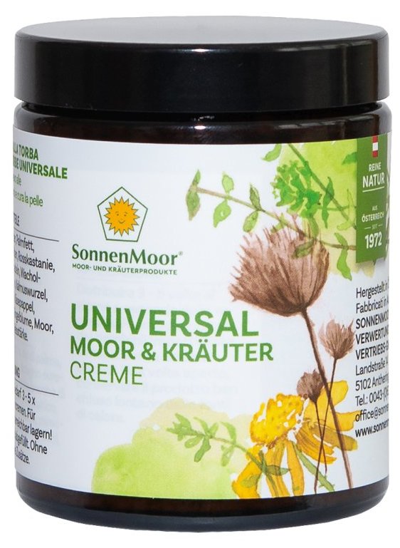 Mit der Moorsalbe mit Kräuter haben Sie eine Universalcreme zuhause, die nicht umsonst so heißt: Das reine Naturprodukt, ohne chemische Zusätze, ist hervorragend für den täglichen Gebrauch geeignet. Mit ihrem einzigartigem Kräutermix und dem wirksamen Moor ist die Universal Moorsalbe mit Kräuter seit Jahrzehnten ein hochgeschätzter SonnenMoor-Klassiker. Rein natürliche, mit viel Sorgfalt ausgewählte Kräuter und Pflanzen wie Arnika, Fichtennadeln, Quendel, Wacholderbeeren und Rosskastanie, sowie das besonders wohltuende Moor aus Salzburg-Leopoldskron beruhigen die Gelenke und lösen Verspannungen. Unverzichtbar ist die Moorsalbe auch zur Pflege bei Narben, Sonnenbrand und bei Hautirritationen nach der Rasur.