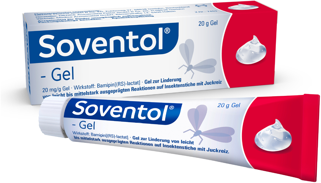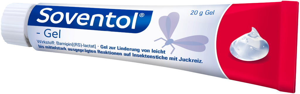 Soventol – Gel wird zur Linderung von leichten bis mittelstarken Reaktionen auf Insektenstiche (z.B. Mückenstiche) mit Juckreiz angewendet.