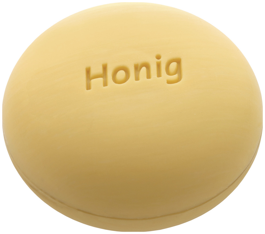 Verseiftes Palmöl, Verseiftes Kokosöl, Enthärtetes Wasser, Verseiftes Olivenöl, Glyzerin, Bienenhonig (bio), Calendula-Extrakt (kbA), Komposition mit ätherischen Ölen, Wachscreme (pflanzliche Basis), Komplexbildner (Zuckerbasis), Kochsalz, Natriumsalz, Eisenoxid (Lebensmittelfarbe), Lebensmittelfarbe (Mineralweiß), Komponente ätherisches Öl