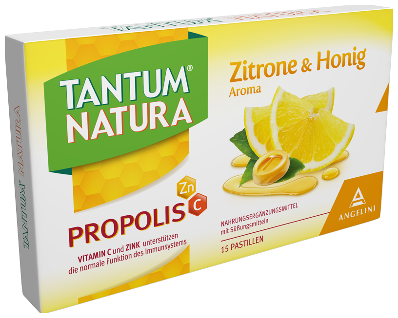 TANTUM® NATURA unterstützt als Nahrungsergänzungsmittel mit der sinnvollen Kombination aus natürlicher Propolis, Vitamin C und Zink die natürliche Funktion der Abwehrkräfte.