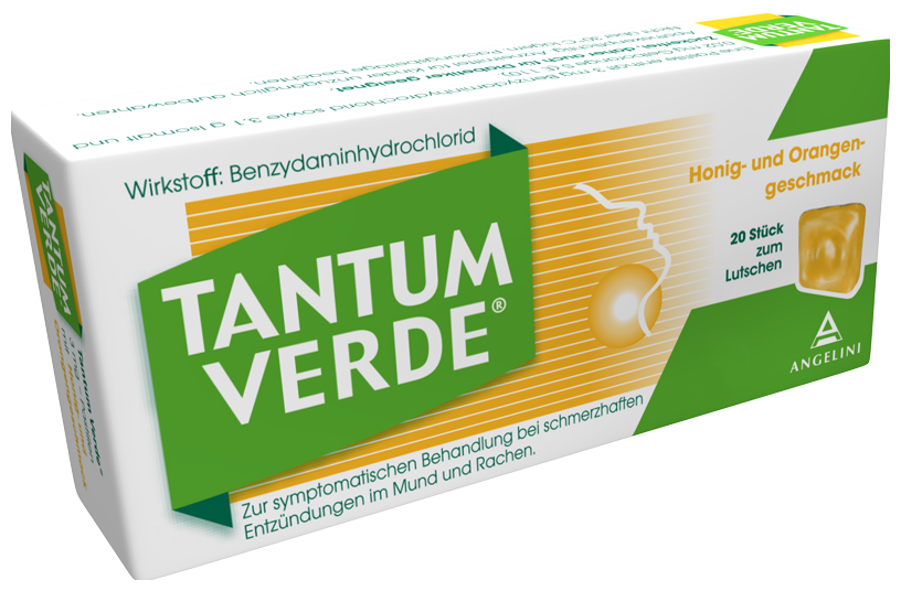 Der Wirkstoff Benzydaminhydrochlorid besitzt entzündungshemmende und schmerzstillende Eigenschaften. Nach rascher Aufnahme und lokaler Anreicherung im entzündeten Gewebe kommt es zu einem baldigen Nachlassen der Beschwerden. Tantum Verde ist lokal gut verträglich und bewirken eine gezielte Therapie der Entzündungssymptome und Schluckbeschwerden.