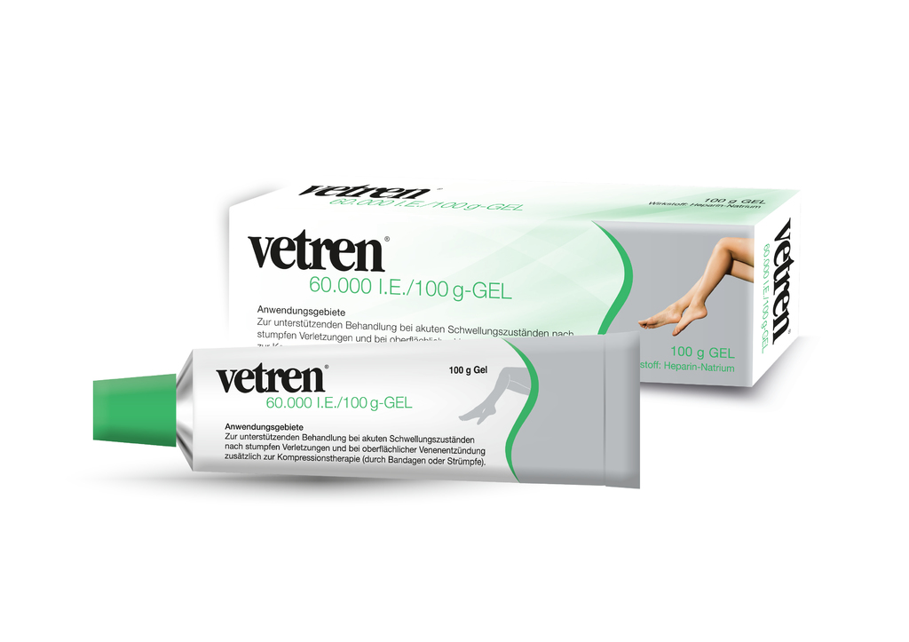 Das Gel zieht schnell in die Haut ein, daher ist ein Einmassieren nicht nötig. Massieren Sie Vetren-Gel bei einer Venenentzündung keinesfalls ein, sondern tragen Sie es dünn auf und lassen Sie es einziehen um eine zusätzliche Reizung der entzündeten Region zu vermeiden.