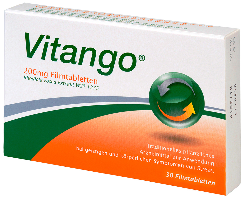 Vitango 200 mg Filmtabletten sind ein traditionelles pflanzliches Arzneimittel zur Anwendung bei zeitweilig auftretenden Symptomen von Stress, wie z. B. Erschöpfung und Schwäche.