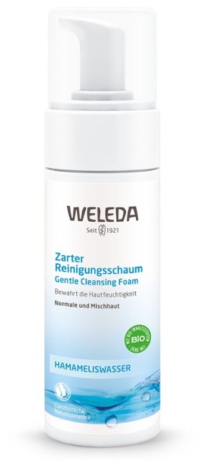 Der Zarte Reinigungsschaum reinigt die Gesichtshaut porentief, befreit sie von Make-up und überschüssigem Hautfett und erhält die natürliche Feuchtigkeitsbalance der Haut. Die Rezeptur mit Bio-Hamamelis erfrischt die Haut und bereitet sie optimal auf die anschließende Pflege mit den Weleda Gesichtspflegeserien vor.