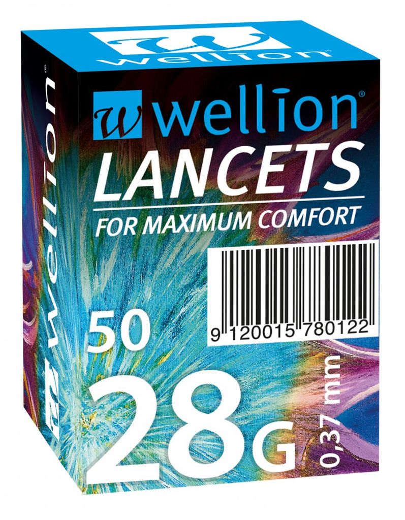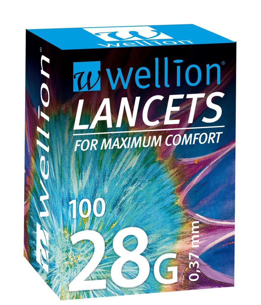 Die moderne Wellion 28G Lanzette für die besonders schonende Blutgewinnung.