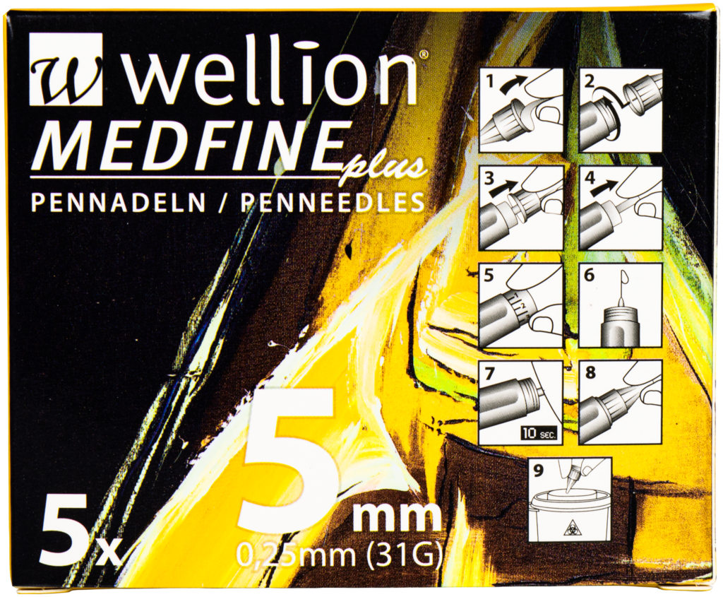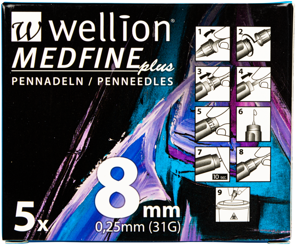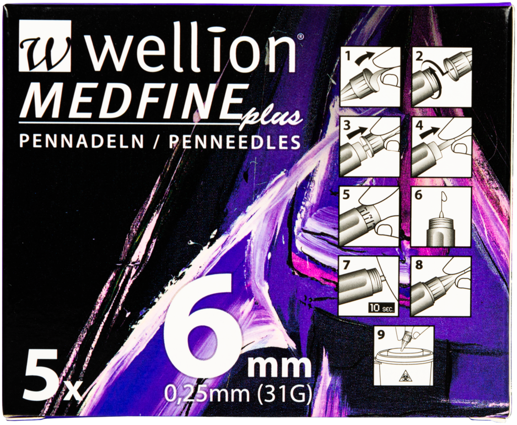 Komfort und Sicherheit - die Wellion MEDFINE plus Pennadeln wurden speziell für die Anforderungen einer optimalen Diabetestherapie entwickelt. Die extra feine Nadel im Facetten-Schliff, in Kombination mit der dünnen Silikonbeschichtung für eine mühelose Gleitfähigkeit, bietet maximalen Komfort. Der erweiterte Innendurchmesser ermöglicht zusätzlich einen optimalen Insulinfluss. Die extra feinen Wellion MEDFINE plus Pennadeln sind in verschiedenen Längen (4mm, 5mm, 6mm, 8mm, 10mm und 12mm) erhältlich um den individuellen Bedürfnissen von Menschen mit Diabetes entgegen zu kommen.