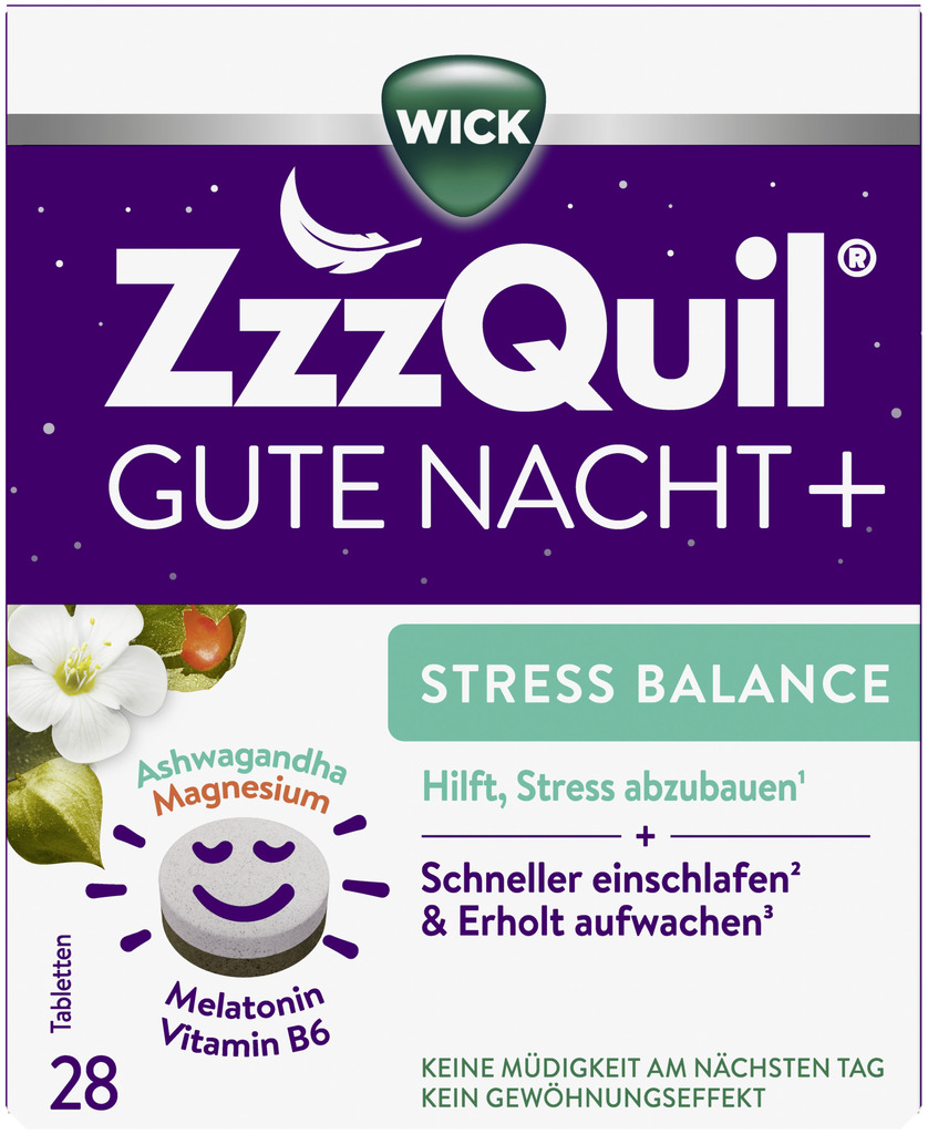 Erfahre mehr über ZzzQuil Gute Nacht+ Stress Balance von Wick