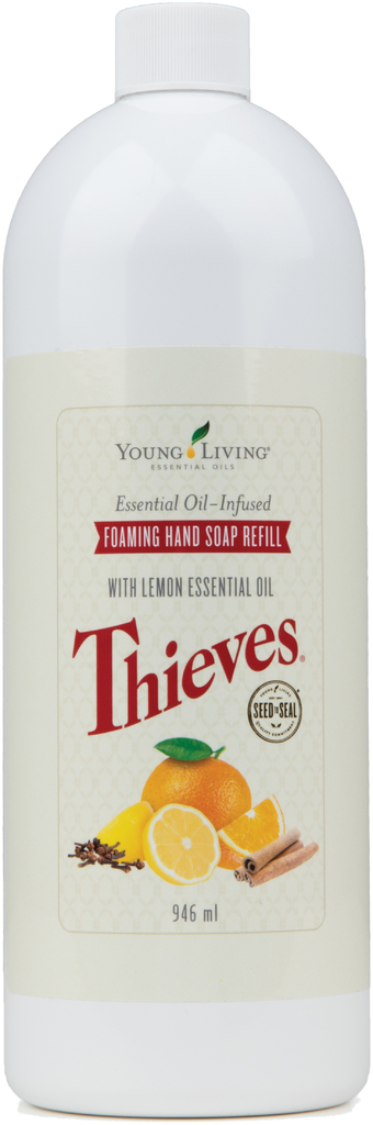 Thieves® Shäumende Handseife – Nachfüllpackung (946ml) Thieves® Foaming Hand Soap reinigt, schützt und konditioniert die Haut mit der therapeutisch wirkenden Mischung aus ätherischen Ölmischung aus Thieves, reiner Zitrone und Orange, Aloe, Ginkgo Bilboa und Vitamin E. Als angereicherter Schaum enthält Thieves Foaming Hand Soap milde Inhaltsstoffe und kann daher häufig verwendet werden, ohne die Haut auszutrocknen oder zu schädigen. Mit diesem Nachfüllpack erhalten Sie weniger Verpackungsmaterial und ein noch besseres Preis-/Leistungsverhältnis!